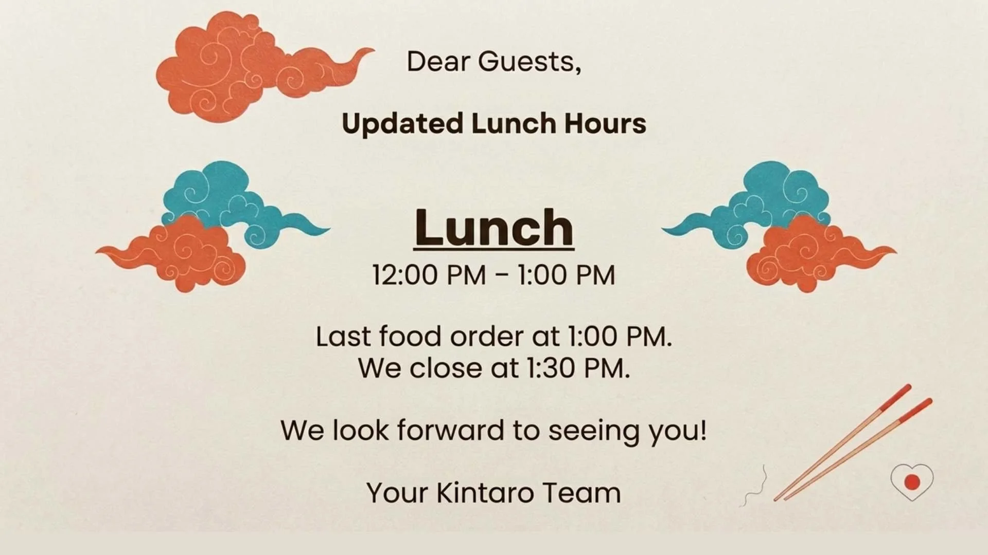 Tuesday–Saturday: 12:00 PM – 1:00 PM